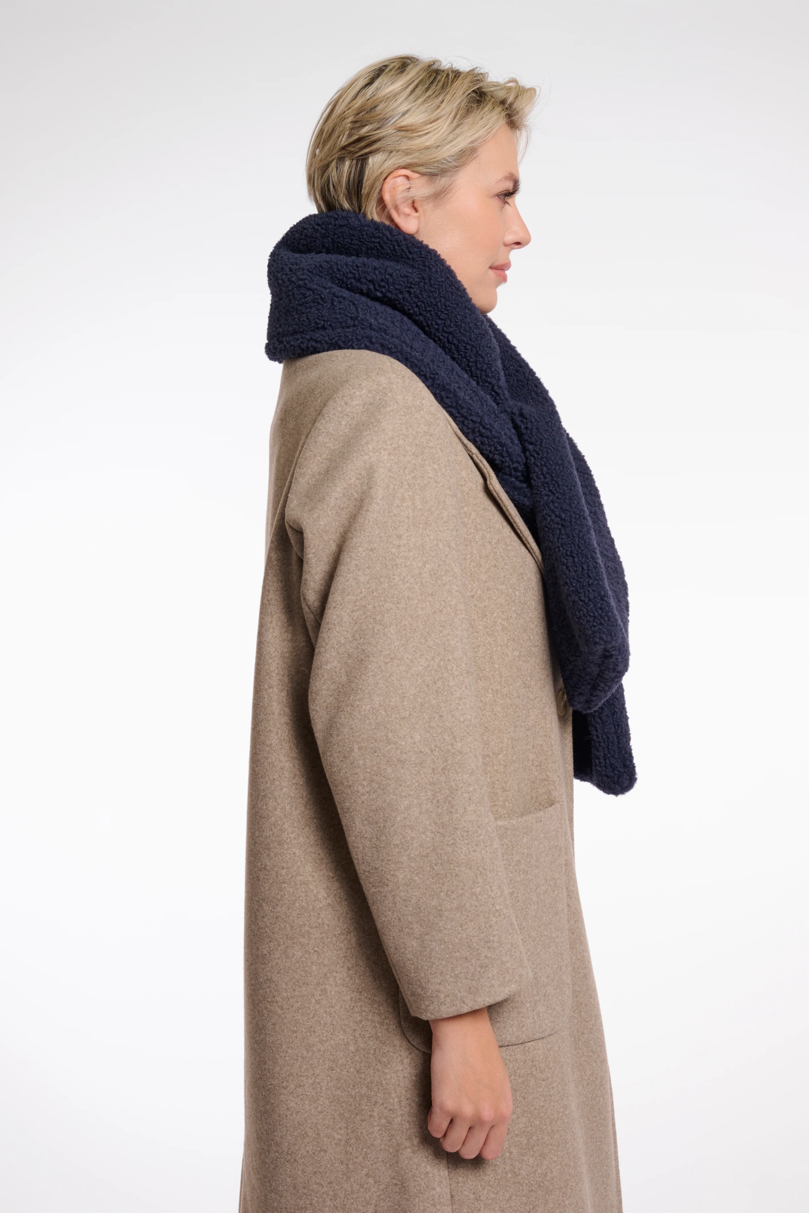 Imagine wrapping yourself in a cloud of pure comfort with this scarf with loop. Made from the softest, fluffiest teddy fabric, this scarf feels like a warm hug against your skin on a chilly day.