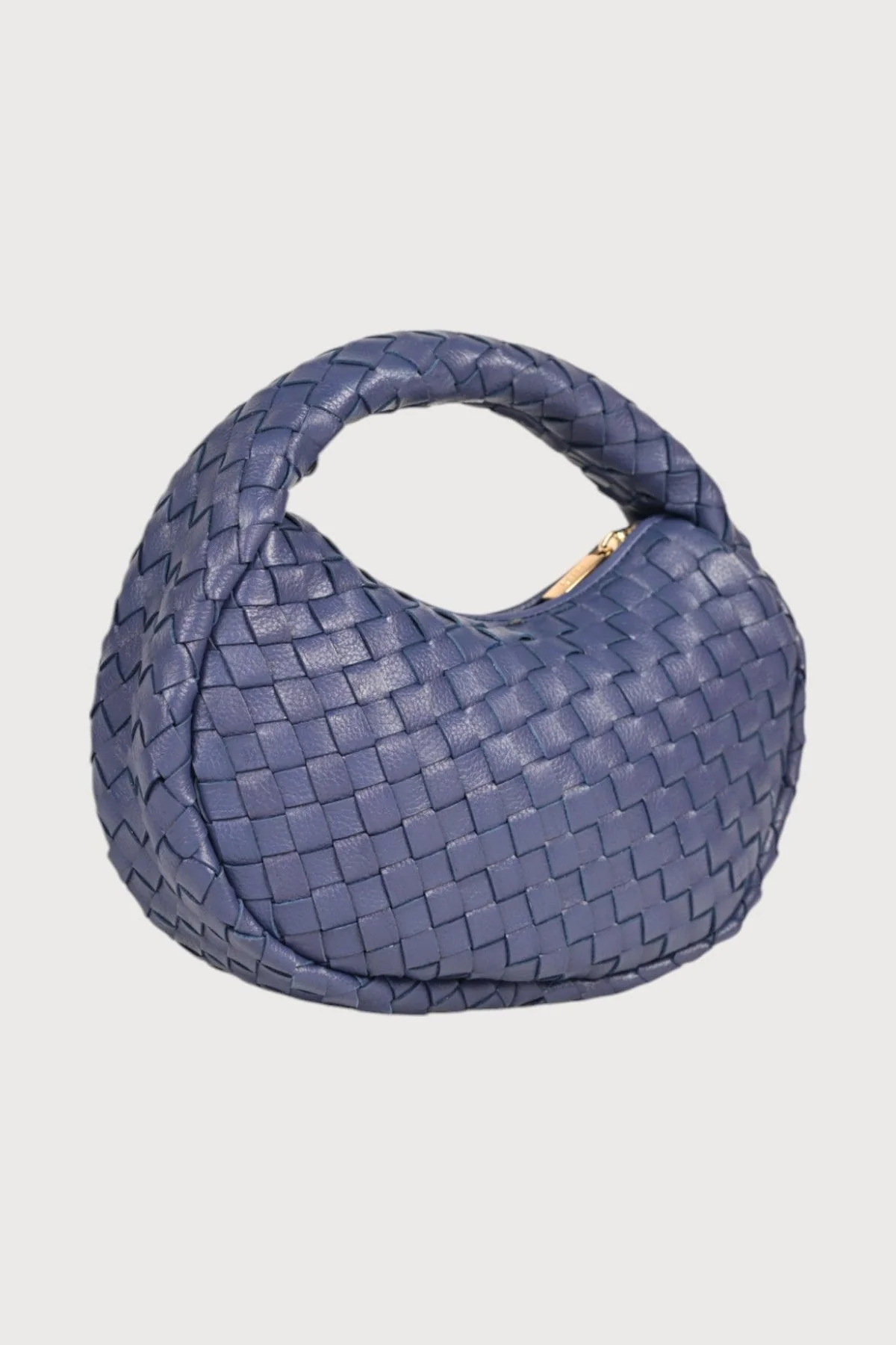 The Laluna mini bag features a woven handle, soft handwoven crossway weave and a sand coloured cotton lining on the interior.