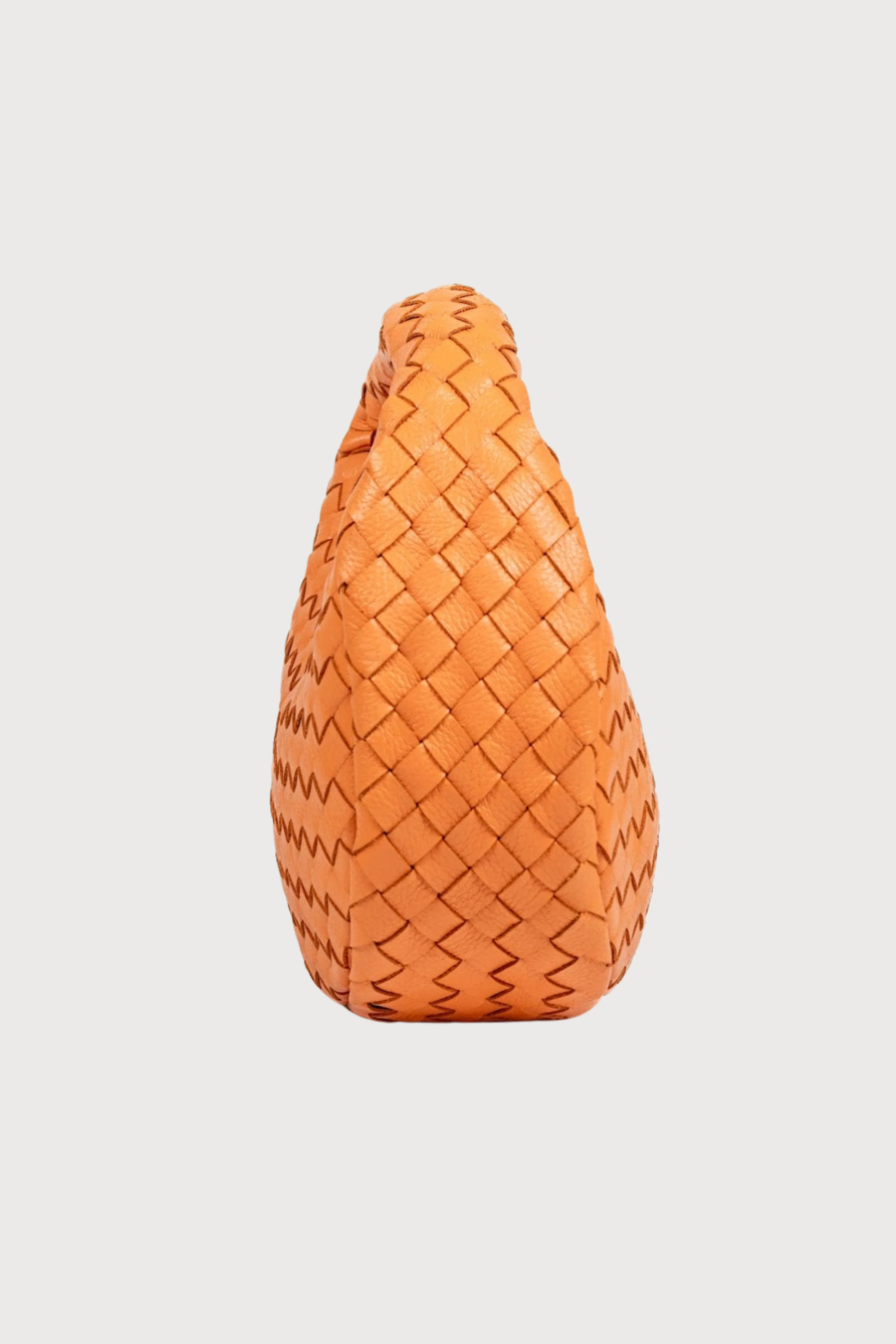 The Laluna mini bag features a woven handle, soft handwoven crossway weave and a sand coloured cotton lining on the interior.